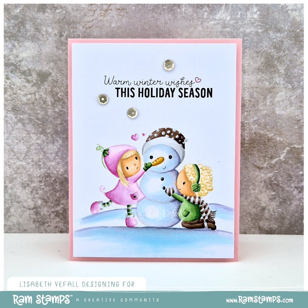 In the spirit of new release, I have a card today featuring RAM Stamps’ latest release. This is Do You want to Build a Snowman? (aff.link). I’ve made a no-lines version and kept the card simple.