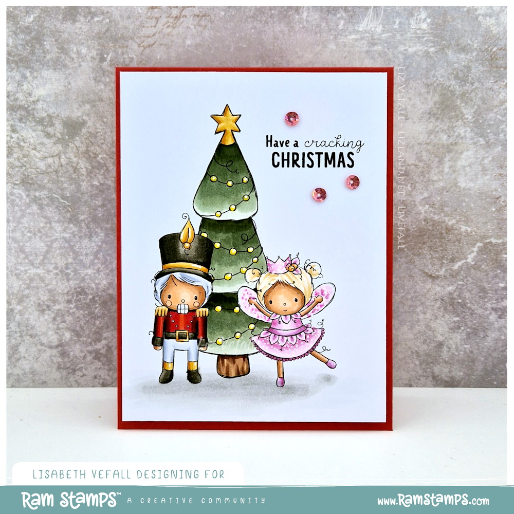 I’ve used one of Rachelle’s more recent, and quite adorable, stamps for today’s card. It’s the Nutcracker scene creator set. I have, once again, kept it simple and just added some sequins around the sentiment.